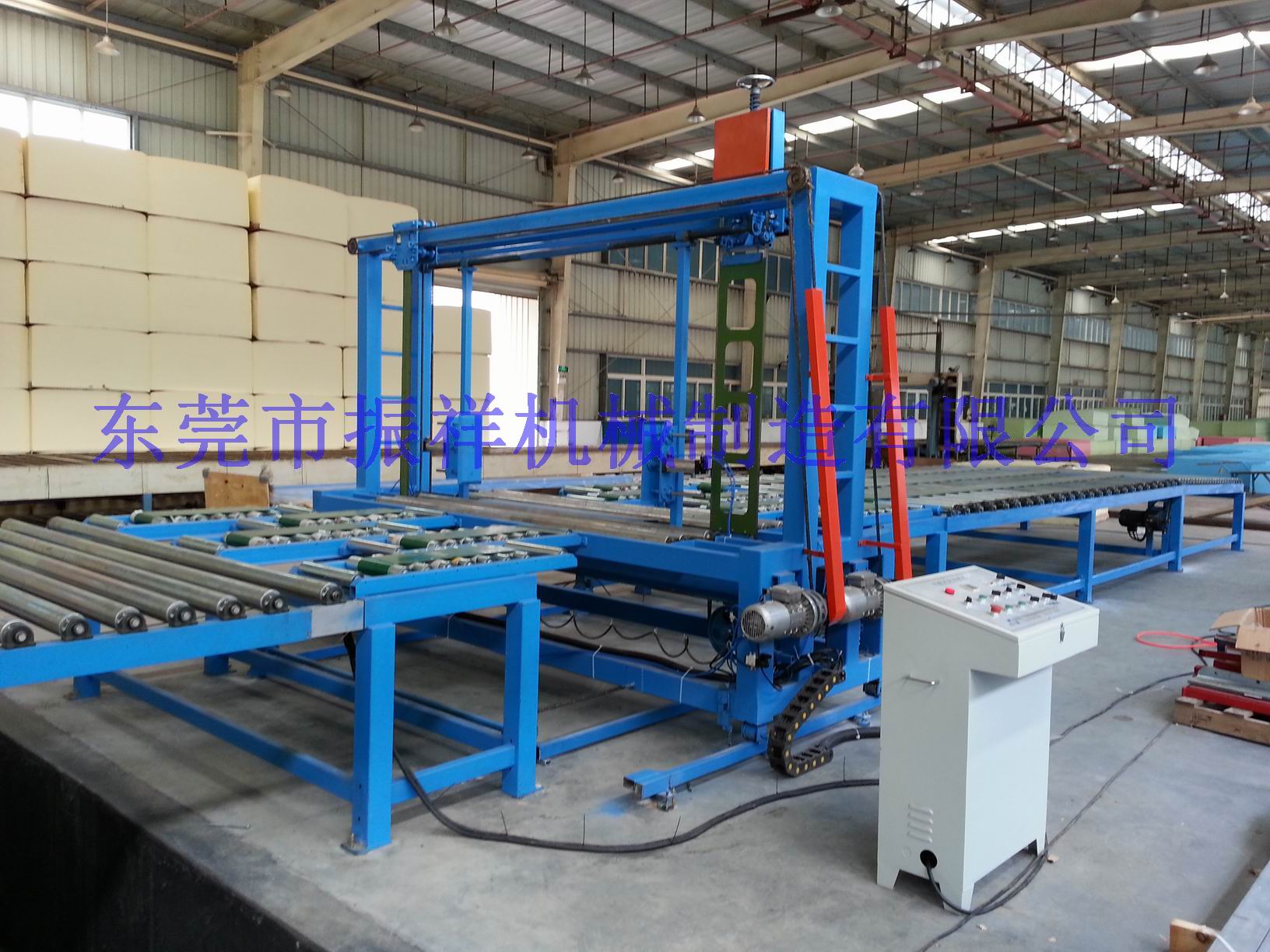 This machine is installed on the foam conveyor line,to cut the continuously foam to some length, in order to transport, storage and processing. This machine adopts digital control, and two cutting way(Saw-toothed and blade) for cutting, users can choose the cutting way depend on their own needs, and solve the risk of machine halt because of blade breaking. The machine is simple to operate and cut precisely.